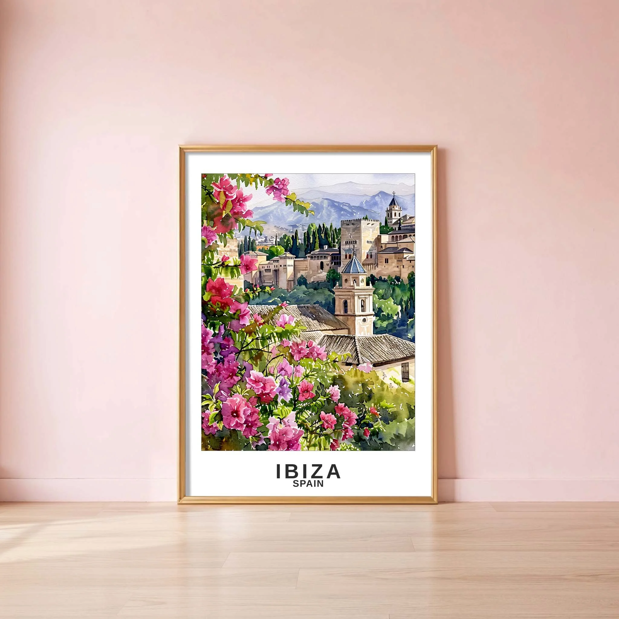 Sunlit walls, terracotta roofs, and bougainvillea tumbling over old stone brings a breezy slice of Ibiza into your room. Printed on museum-grade archival paper using giclée inks, the watercolor-style scene keeps its bright, sun-washed tones without glare thanks to the light-absorbing matte finish. Hung in a hallway, studio, or reading nook, it reads like a postcard from a quiet Mediterranean morning, inviting slow breaths and daydreams of coastal streets and hidden courtyards.